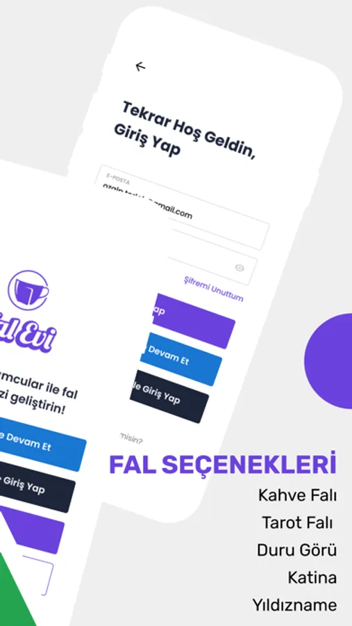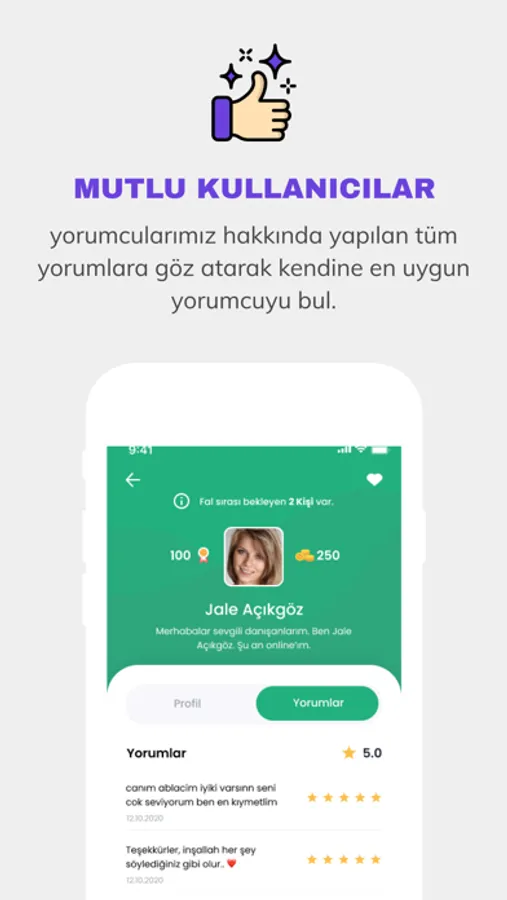* Uygulamayı aç, Fal tipini seç, falcı listesinden puanına göre en iyi yorumcunu seç, falını gönder!