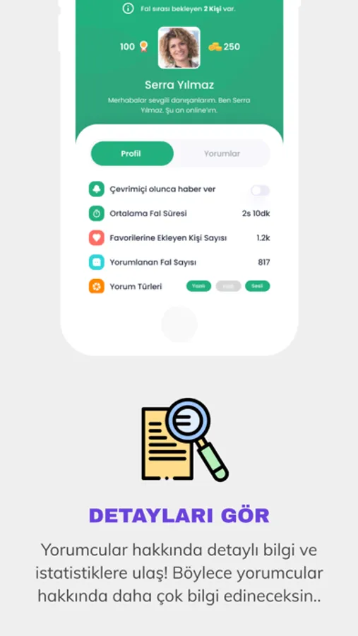 * Beğendiğin falcıları favorilerine ekle ve online olduğunda anında bildirim al!