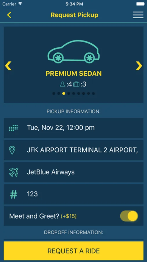 You can request from a variety of vehicle types that include Sedans, Minivans, SUV, Large SUV and Limousines.