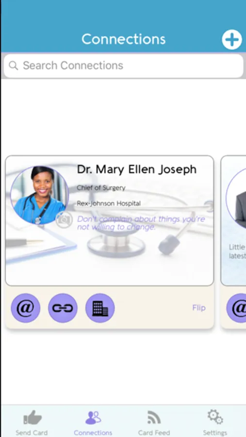 Create a digital business card for reciprocal info sharing with connections. Then customize your card for individual connections as much or as little as you'd like. You can export Wallet and Connection card data any time.