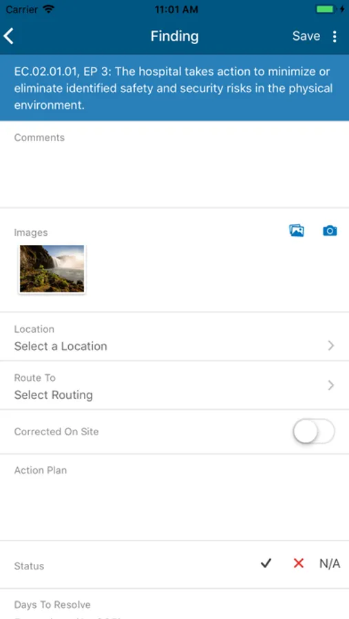 • Add images to a finding using the camera on the mobile device or images on the camera roll