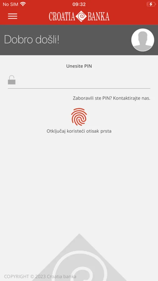 Prijava u CROBA mBanking aplikaciju moguća je PIN-om, otiskom prsta ili prepoznavanjem lica. Na mobilnom uređaju i u postavkama korisničkog računa u aplikaciji potrebno je omogućiti korištenje otiska prsta ili prepoznavanja lica.