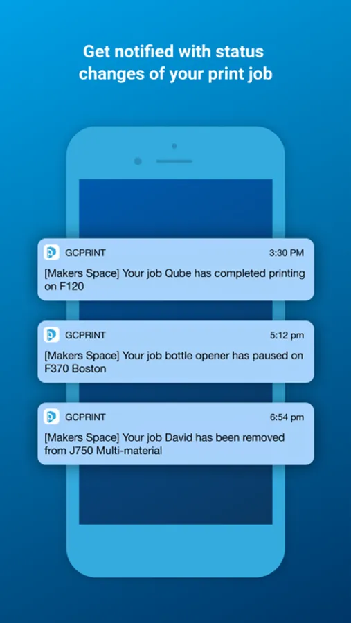 1. No longer worry about machines unexpectedly stopping or being idle for many hours. They will be notified when a print job is complete or unexpectedly pauses.