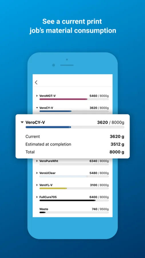 3. View current material levels on the 3D printers, and plan refills / purchasing.