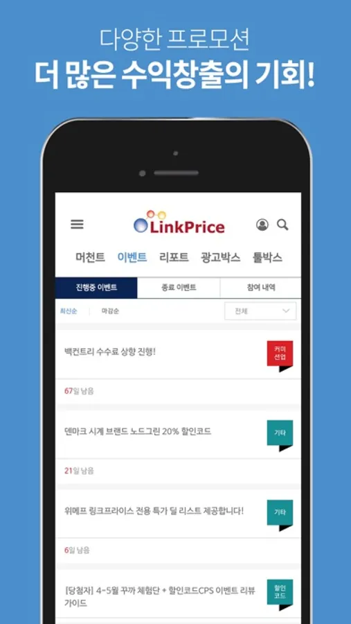 링크프라이스 앱을 통해 홍보하고 커미션을 받으세요!