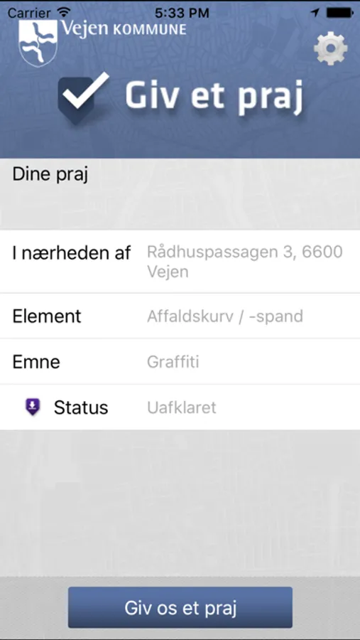 Velkommen til Vejen Kommunes app til brug for Giv et praj.