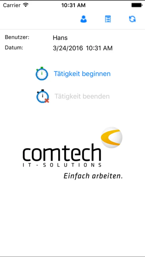 Mobile Client App für die mobile Zeiterfassung am comtime Service