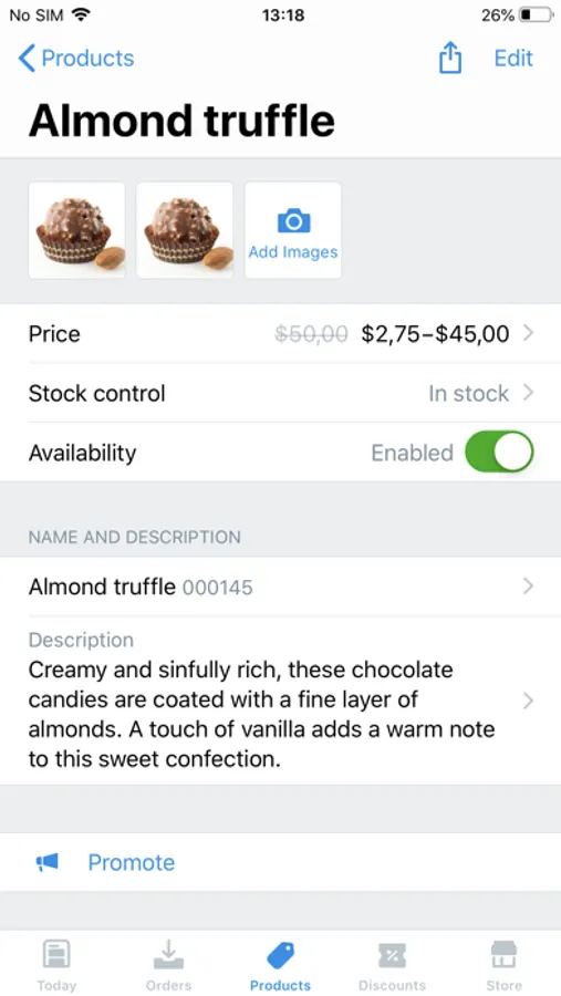 MODIFY INVENTORY, update product names, prices and descriptions from within your My e-Shop App.