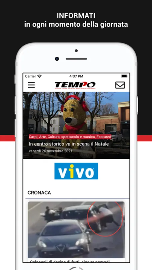 NEWS – Questa sezione è pensata per chi cerca un'informazione completa e approfondita: è l'intero sito di Tempo all'interno della App con le notizie aggiornate in tempo reale, gli approfondimenti, le opinioni.