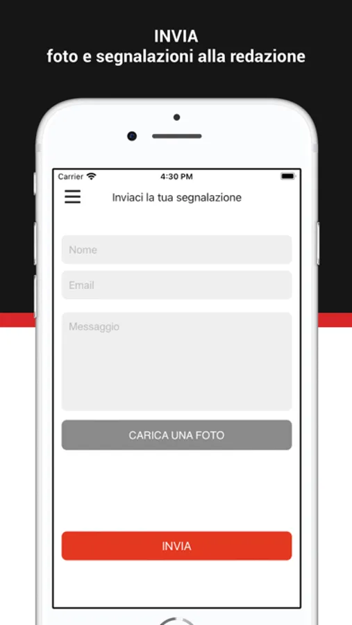 INVIACI LA TUA SEGNALAZIONE – A portata di mano sullo smartphone questa sezione consente di inviare foto e segnalazioni.