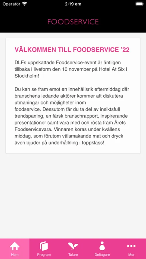 Foodservice ’16 är mötesplatsen för dig som är beslutsfattare inom restaurang- och storhushållsbranschen. Vid konferensen kommer du få nya insikter från experter inom konsument- och branschtrender och samtidigt nätverka med andra beslutsfattare inom restaurangbranschen.