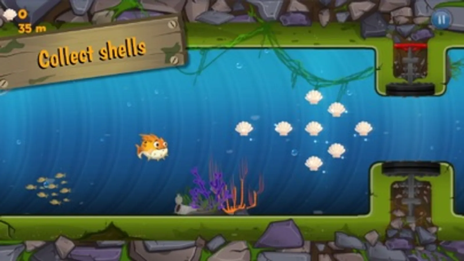 Puff Fish for childs, boys and girls. Help your fish under the water to reach the sea.