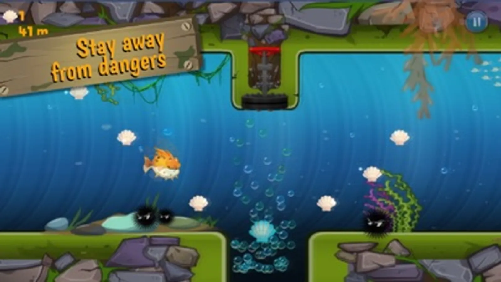 Let's join it for an amazing adventure. You are swimming in dangerous sewer with your fish! How far can you swim?