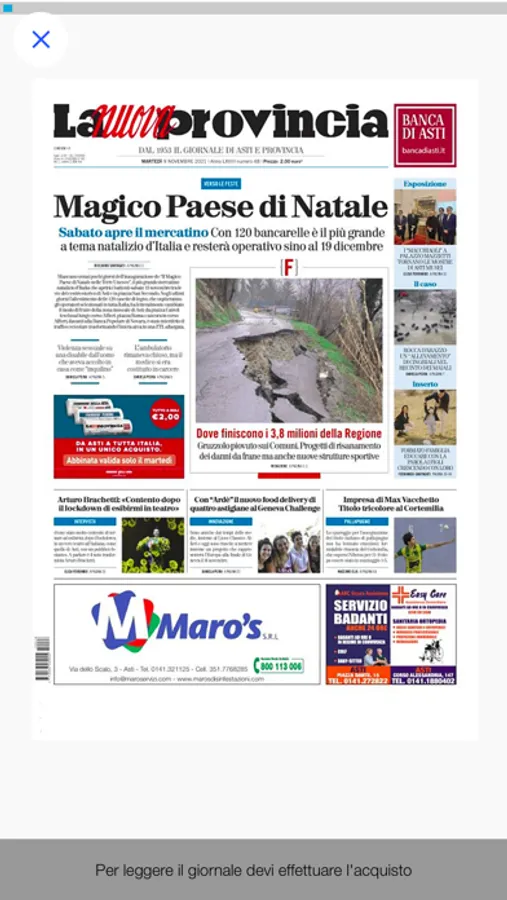 Puoi consultare gratuitamente la prima pagina o acquistare l'edizione completa. Sfogliando le pagine del giornale, ingrandendo i contenuti, ruotando il dispositivo, sarai libero di leggere in piena comodità e nella modalità preferita.