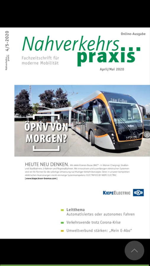 Die Nahverkehrs-praxis ist eine im In- und Ausland bekannte Verkehrszeitschrift für den öffentlichen Personen-Nah- und Regionalverkehr und die Verkehrsindustrie mit einem akzentuierten Leitthema in jeder Ausgabe. Sie berichtet praxisbezogen über technische Neuerungen und aktuelle Entwicklungen in den Verkehrsunternehmen und -verbünden sowie der Verkehrsindustrie. Experten informieren über verkehrspolitische Themen, rechtliche Neuerungen und berichten von den relevanten Branchenveranstaltungen. Dabei deckt die Nahverkehrs-praxis das gesamte Spektrum von Schienen- und Straßenverkehr innerhalb des ÖPVs ab. Ausführliche Beiträge mit vielen Hintergrundinformationen und spannende Interviews informieren über das aktuelle Geschehen in der Welt des öffentlichen Personenverkehrs. Die Zeitschrift erscheint sieben Mal pro Jahr; Bildergalerien, Videos und weiterführende Verlinkungen ergänzen die App-Ausgabe.