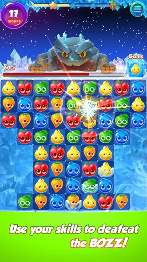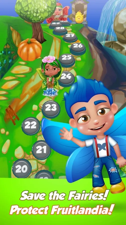 Using an enhanced Classic match 3 play system with all your favorite power ups you battle to save Fruitlandia from Peng-Vuu and his evil minions he has possessed. Starting with two of the fairies on your side you try to find and catch Peng-Vuu to remove his evil spell over all Fruitlandia. With numerous different play modes, level types, and blockers you try to successfully navigate through all the levels to catch him, but his is quick and sly! He will not be caught easily! Can you help the fairies and save Fruitlandia? Are you the one?