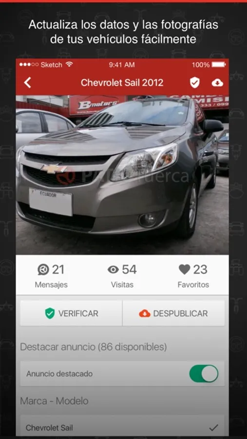Gestiona tu inventario de vehículos desde cualquier lugar y publica en los portales más efectivos de México, Argentina, Ecuador, Perú, Panamá y Bolivia.