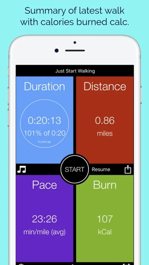 - The duration, distance & pace screens each have a unique color for easy identification at a glance.