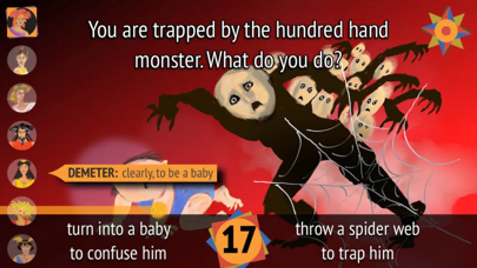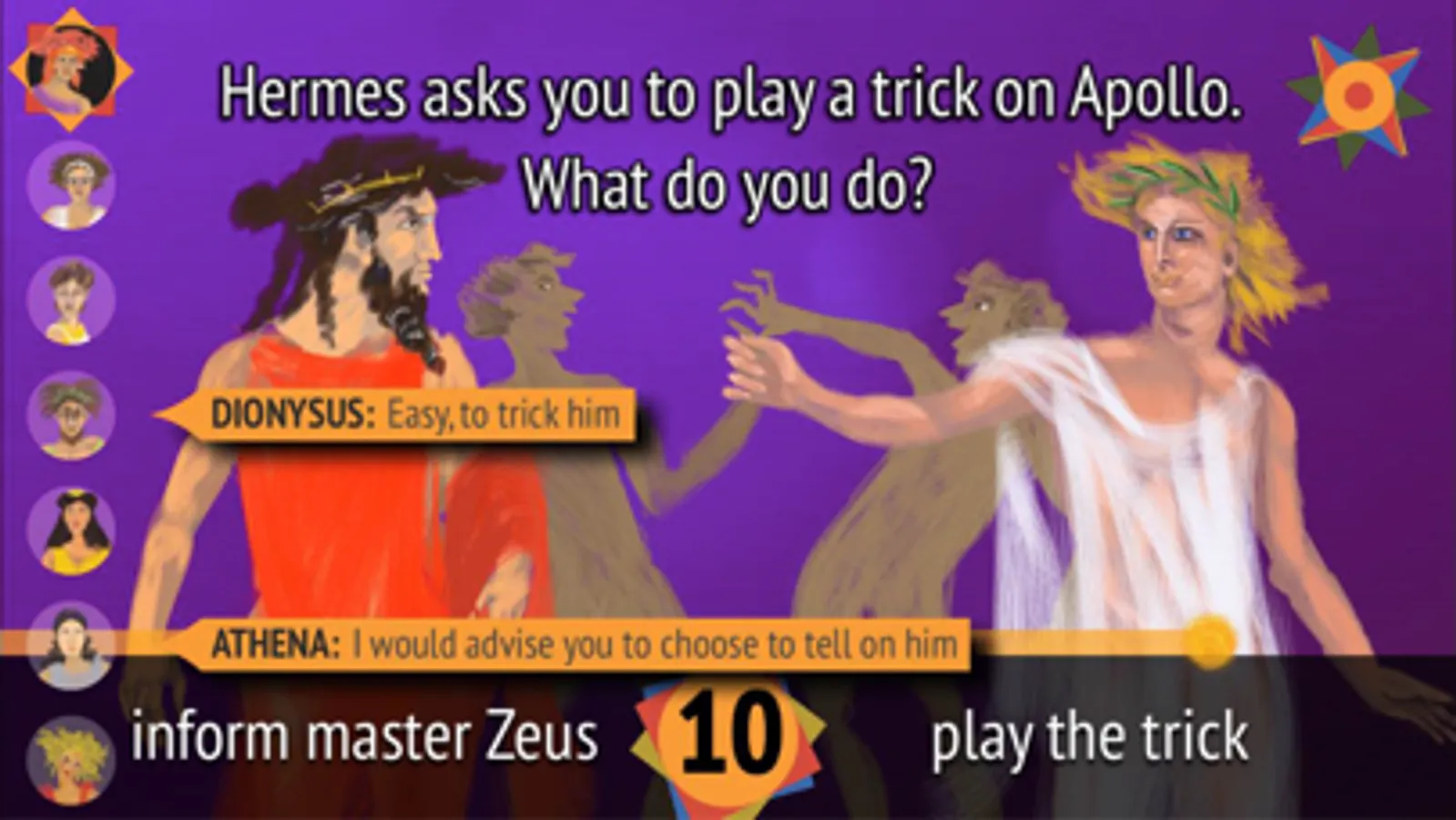 Make decisions about how you would choose between mythological encounters. Answer questions about yourself and learn which god is most like you. Befriend many gods and build a collection, while learning the distinct personalities of each of the Greek gods.
