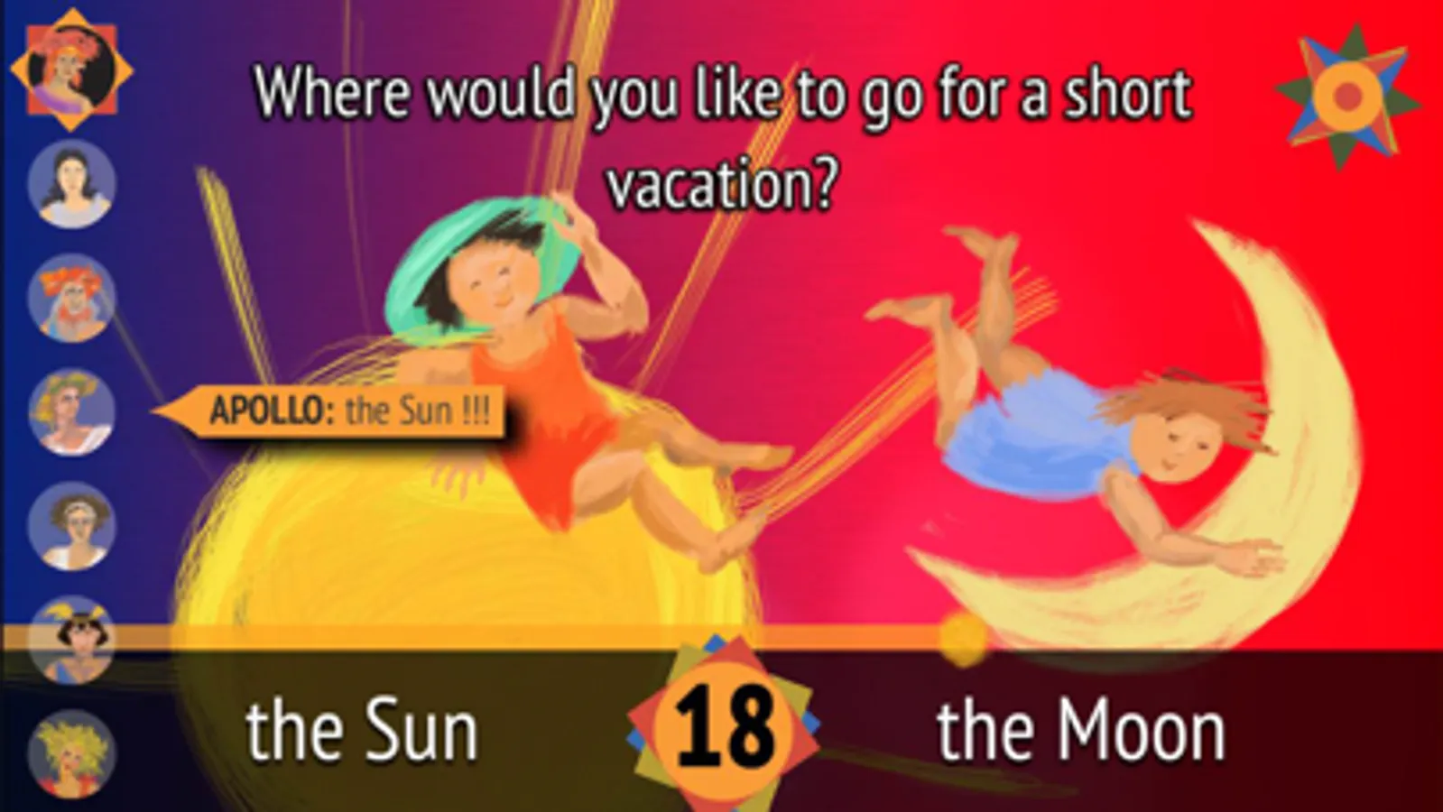 Who’s Your God is not a quiz! This game is not about challenging your knowledge — it’s questions with no wrong answer, all for learning the wonders of Greek myth for the first time.