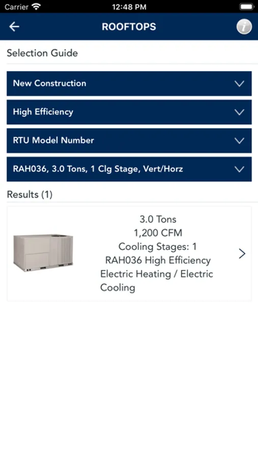 The ICP® Rooftops app allows users to perform on the spot selection of HVAC rooftop units for both replacement and new construction, and estimate energy savings between ICP® Standard and High Efficiency units. Users can input an existing unit model number for ICP or competitive equipment, or desired unit specifications, and obtain the optimal ICP model for their requirements.