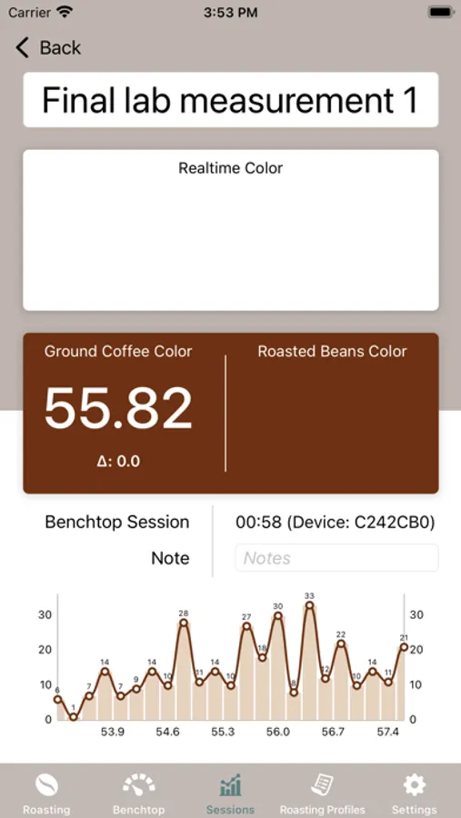Connect wirelessly with ColorTrack Bluetooth enabled color meters, and roast perfect coffee every time. When connected to a Bluetooth enabled ColorTrack Benchtop system, you can take samples, compare against previous samples, and upload samples to your ColorTrack Cloud and Cropster account. When connected to a ColorTrack Realtime system, ColorTrack for iOS will monitor the color of your roast in real-time and alert you the moment your target roast color has been met.