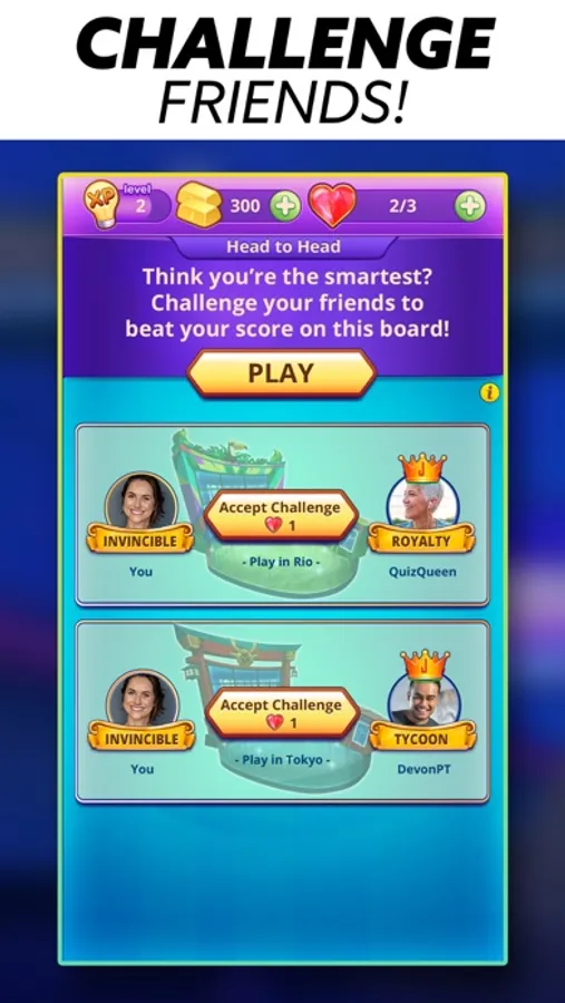 • Have fun challenging the world with thousands of clues and categories