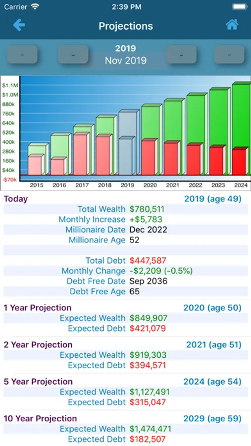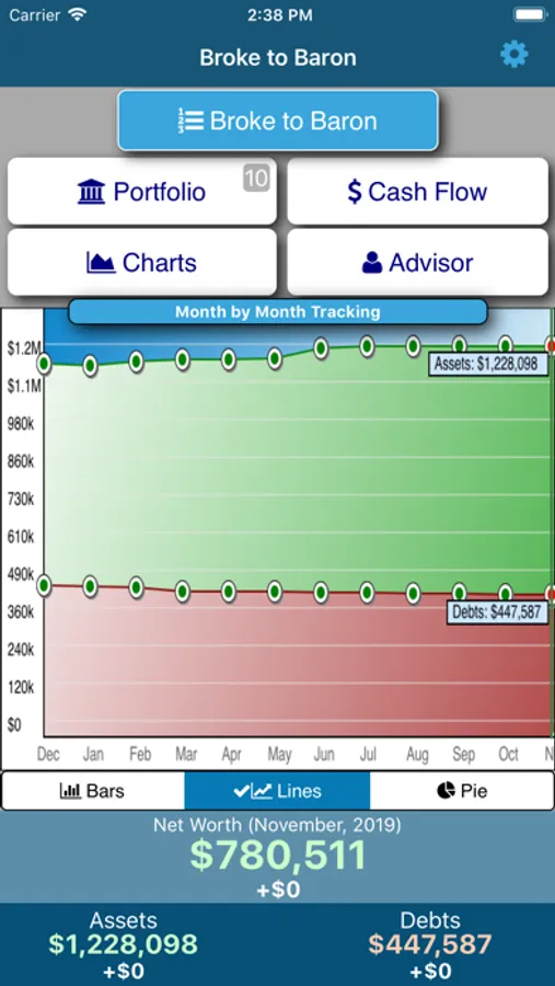 This is an app like none other. The app tracks all of your assets and debts on a monthly basis and presents the data in an array of charts, graphs, stats and analysis to let you know how your money is doing and what your projections are.