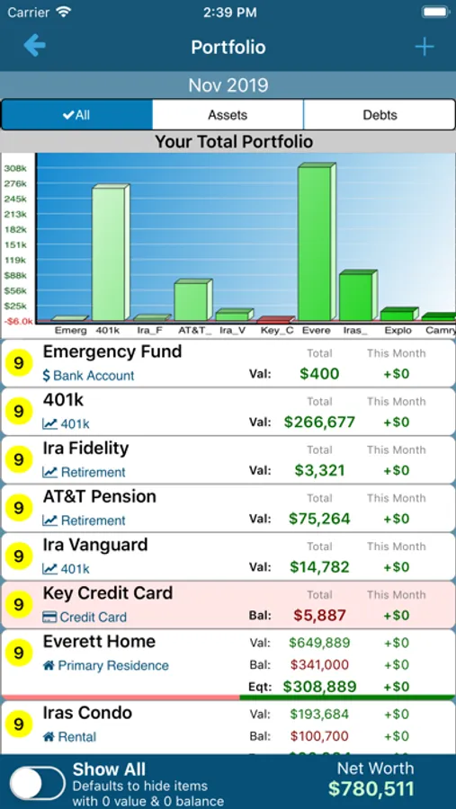 * Tracks all your debts and assets.
