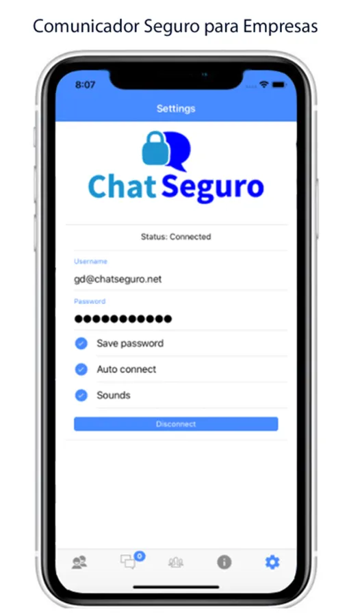 Chat Seguro is a secure messaging system developed for the corporate market. For companies who want to improve internal communication and ensuring the privacy and confidentiality of information.