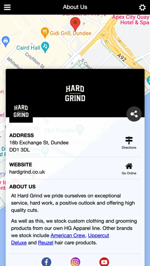 “ Forever trying to enhance our service, we are now stoked to bring you the Hard Grind App. From booking appointments to shopping our Apparel range, you can now access the full HG experience within your very own app. We have loaded in some awesome features to keep you up to date with special promotions and events as well as a gallery to browse all our work.