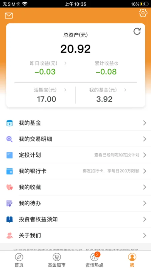 8、基金关注:登录账号,随时随地浏览被关注基金。