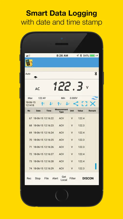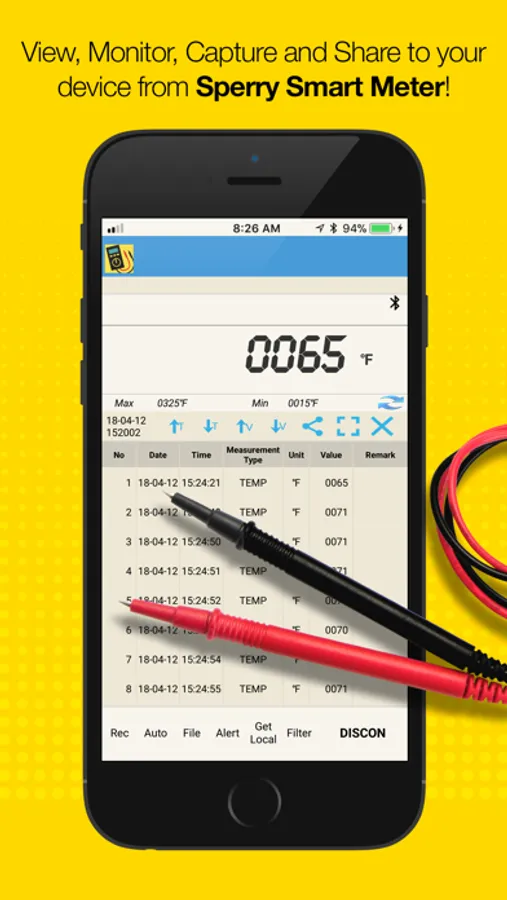• Enables datalogging of measurements to your device (while in Bluetooth range), with user selectable measurement frequency and duration.