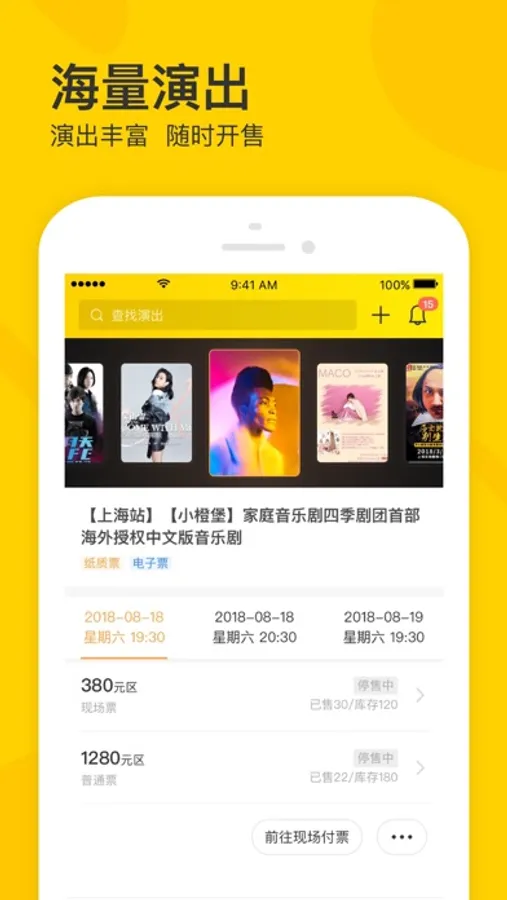 【售票】可在一个页面完成不同演出、不同场次、不同票面的管理;
