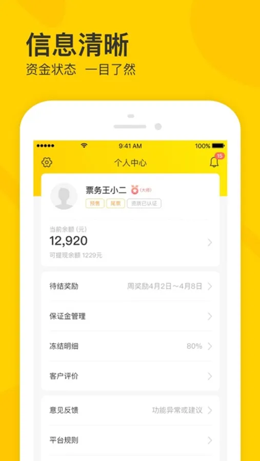 【余额】票款T+0到账,可查看票款、奖励、及提现;