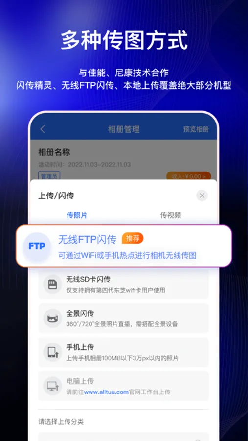 闪传直播平台是专业的云摄影技术服务商,可为摄影师/摄影机构等用户提供专业的云摄影软硬件技术支持。