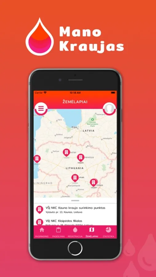 – Interaktyvus kraujo davimo vietų žemėlapis;