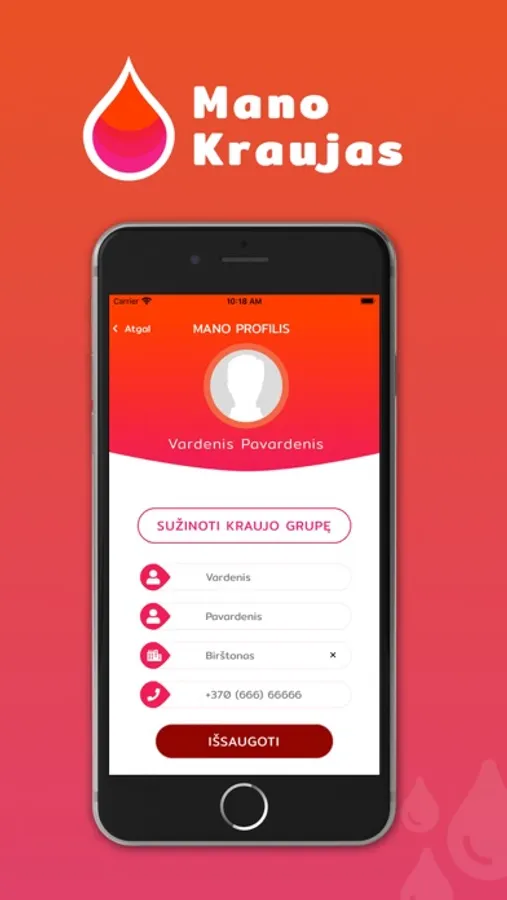 Pagrindinės „Mano kraujas“ programėlės funkcijos: