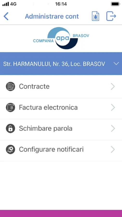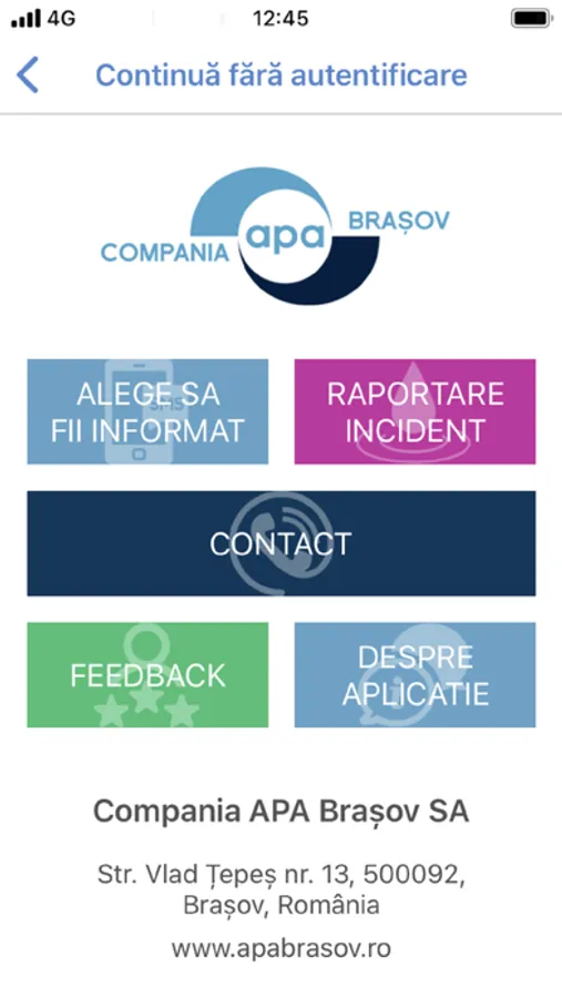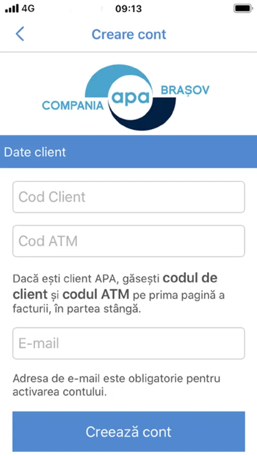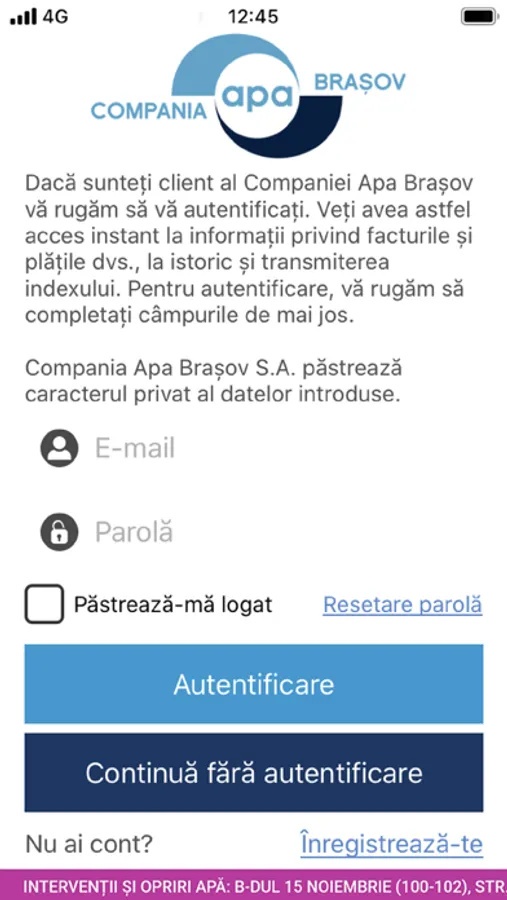 Obs. Autentificarea în aplicaţie se poate face si cu datele contului deja creat în secțiunea Contul meu de pe www.apabrasov.ro