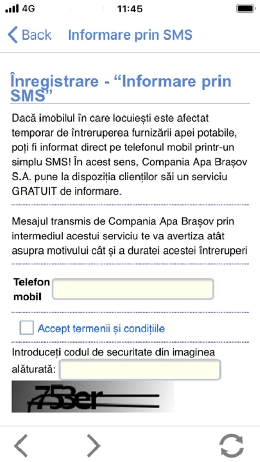 - Te înregistrezi la serviciul gratuit de Informare prin SMS pentru notificări personalizate (de exemplu: vei afla când sunt planificate în zonă lucrări care presupun opriri de apă și pentru cât timp)