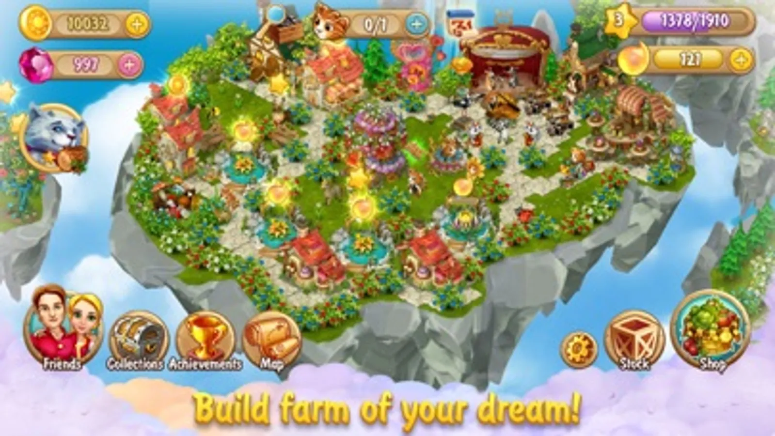 “Cloud Farm” is a fairy story, where every player can join unforgettable adventures, defeat evil wizard and make friends with cute furry local citizens. They are almost like cats, but can help you with your garden or household tasks. Discover a new farming experience, full of fun and happiness in fairy tale story. Help price and princes to save the fairy world and restore the kingdom hidden in clouds. Travel through mysterious islands and shiny worlds full of new acquaintances, unusual items and exciting memories.