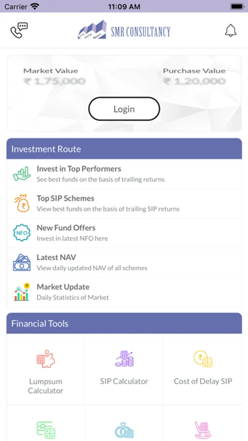 SMR Consultancy is one-stop shopping for all your investment needs. You can use this state of the art app to stay on top of your Complete Financial Portfolio with all assets: