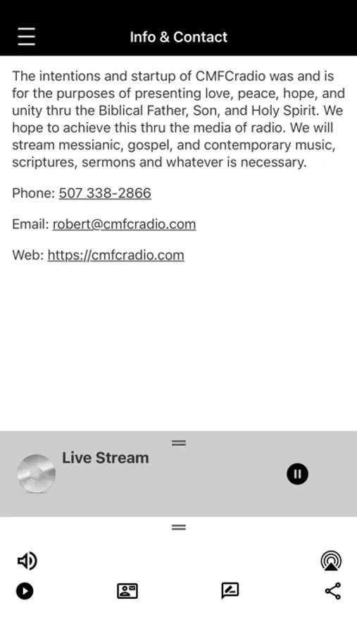 Messianic, Gospel, Classic R&B, Ministry, Talk What is CMFC all about? After much deliberation and thought I have come to believe that CMFC is a platform to unite and bring people into unity and one belief based on love, faith, and understanding, as it is written, in unadulterated scriptures KJV. CMFC is a prophetic and missionary platform giving confidence and assurance that we are living in Revelation times. We offer and encourage others to join in with us to be part of the commission giving by Christ, to take the Good News and Gospel to all the world.