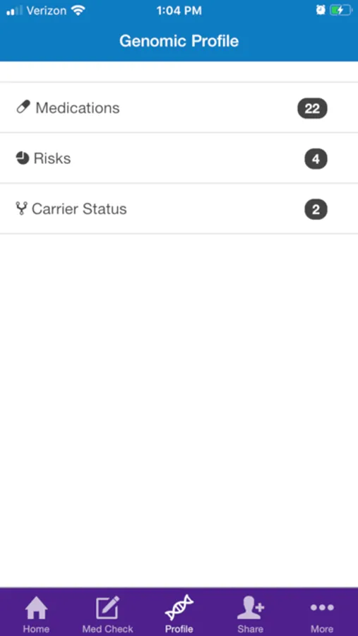 DRUG-GENOME INTERACTIONS: Our Med Check functionality lets you enter the name of a medication to find out if there could be side effect, efficacy or dosage issues due to your genetics. You can also check the Medications section in your Profile to view the complete list of medications affected by your genetics.