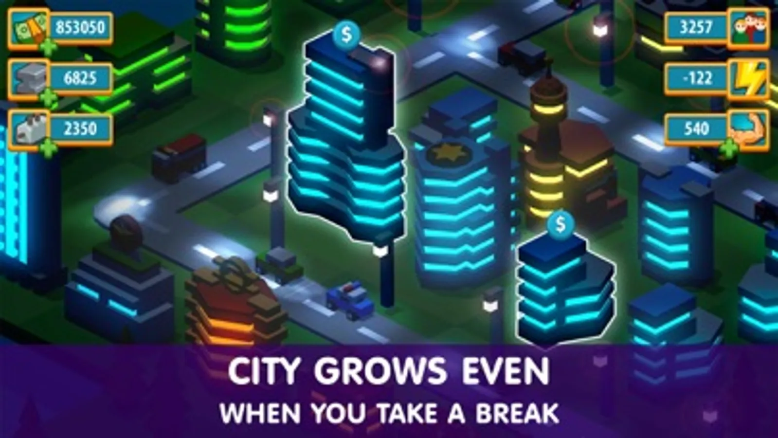 • The city keeps growing and bringing you money even when you're away!