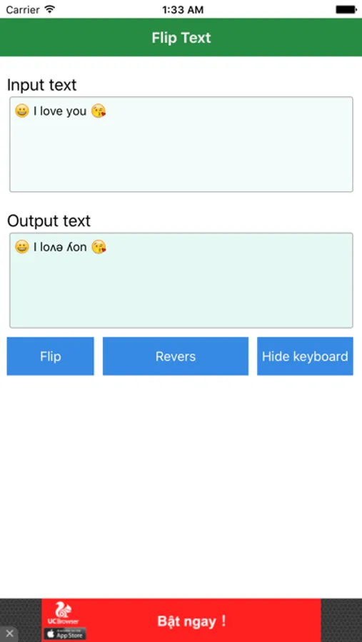 Create flipped, rotated messages that can be sent to Facebook, Twitter or used in SMSs and Emails! It's super cool!