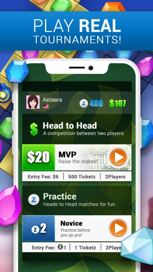 Think you’re a Pro? Challenge other players for real money and see whose got mad match-3 skills! Don’t think you have what it takes yet…practice for free.