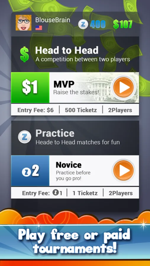 - Earn fast easy cash in fast single game tournaments - Over $500,000 given away weekly!