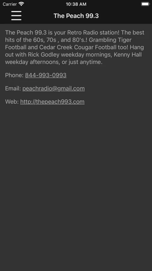 The Peach 99.3 is KPCH-FM. The Peach is a Classic Hits Radio station in Ruston, Louisiana. The Peach plays the hits of 70's and 80's and we have a lot of fun doing it. Listen online at www.thepeach993.com. Also download the free app from the website.
