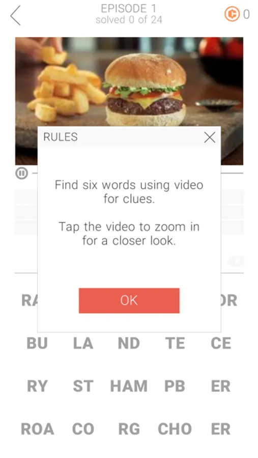 Put your observation skills to the test! This game will challenge you like never before. Watch a 5-second VIDEO and guess six words. You can pause the video at any time to look at the details. Tap the movie to switch to a full-screen view. Are you ready to watch and play?